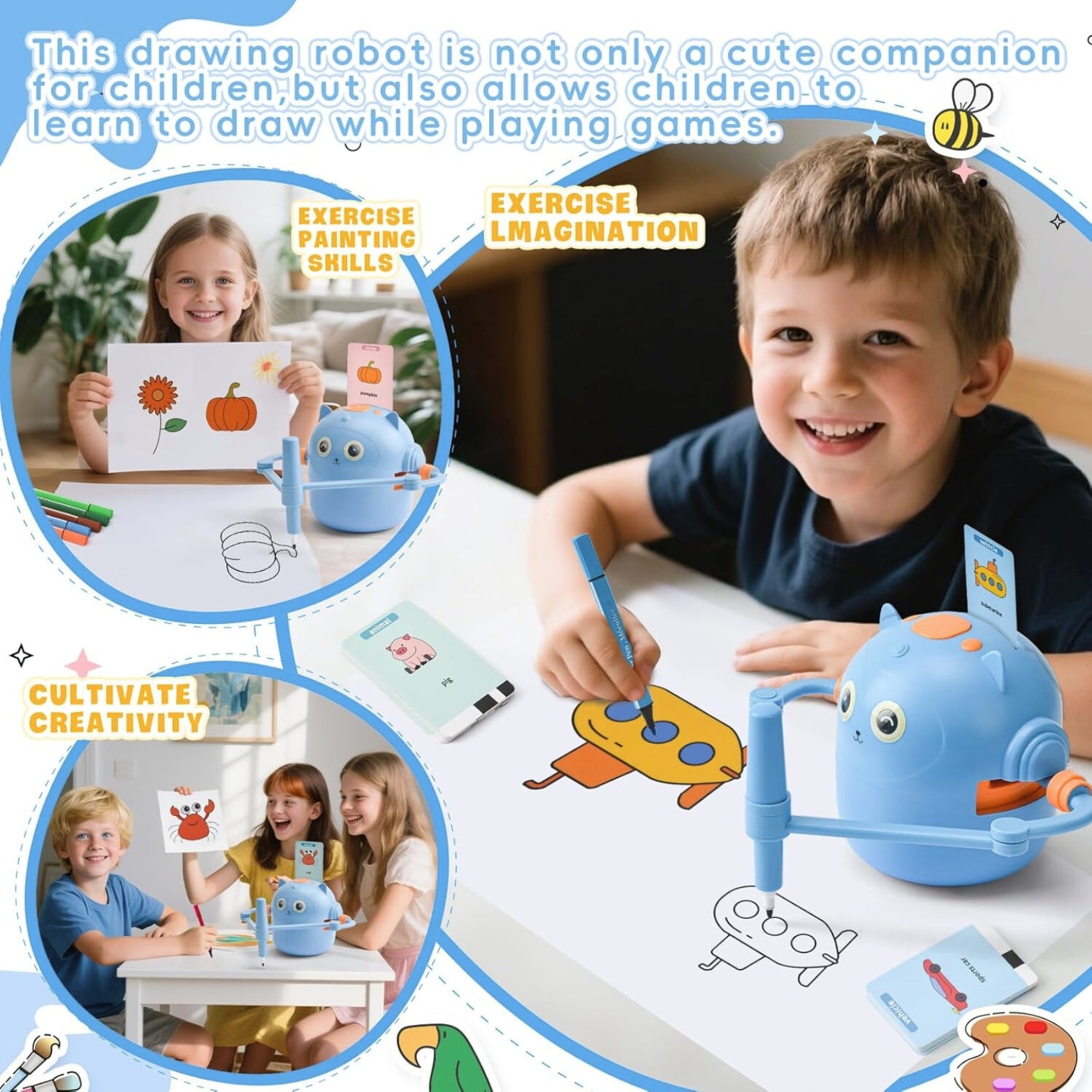The robot lasts about 4 hours on a full charge, providing ample time for creativity. It charges via USB for convenient power.